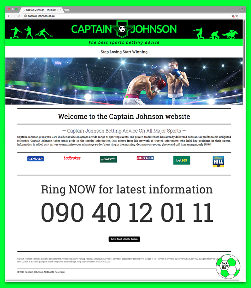 —Captain Johnson gives you a 24 hour, 7 days a week insider advice on a wide range of sporting events. His speciality is football betting.